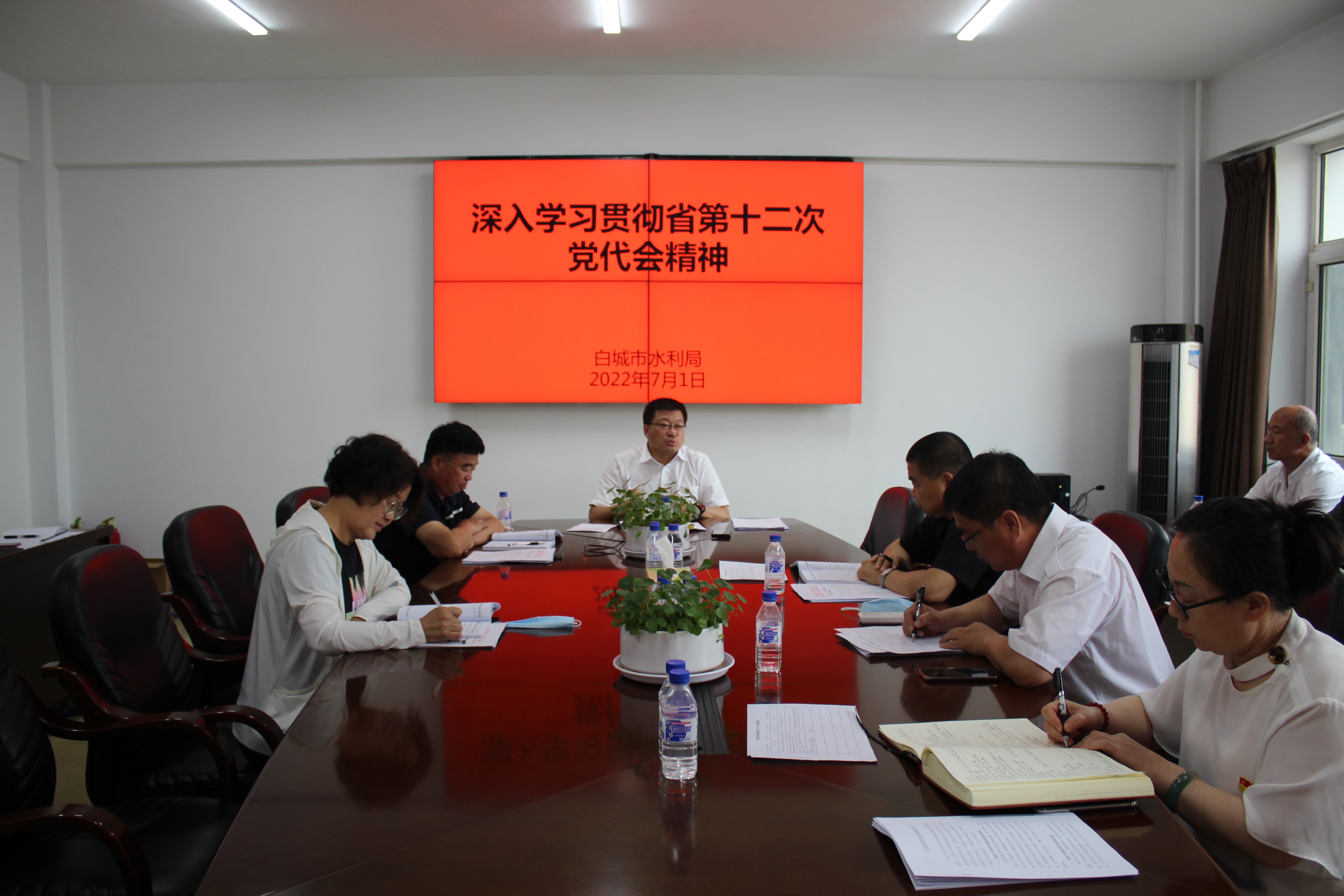 7月1日,白城市水利局党组书记、局长范非主持召开专题会议,传达学习贯彻中国共产党吉林省第十二次代表大会精神,研究部署水利重点工作。